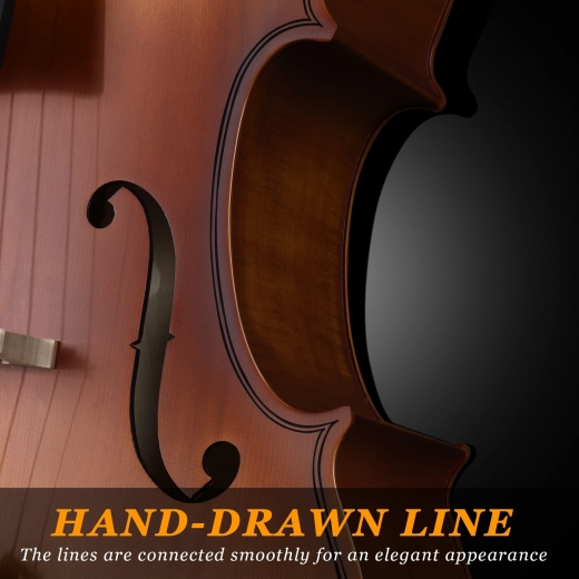La table du violoncelle est fabriquée en épicéa de haute qualité, offrant une solidité accrue et un son plus dense et résonant. Le dos en érable, avec sa texture distincte, apporte non seulement une touche élégante mais absorbe également efficacement les bruits et réduit la transmission des vibrations.