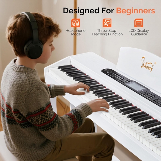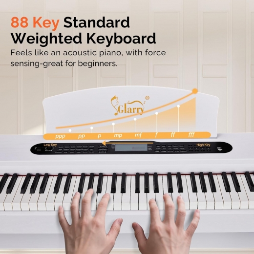 【Clavier complet 88 touches avec mécanique à marteaux】Ce clavier réagit de manière sensible à la force de frappe, produisant ainsi des variations nuancées de volume et d’expression. Cela permet un jeu particulièrement émotionnel et expressif. En même temps, le clavier est conçu de façon ergonomique, ce qui rend le jeu prolongé confortable pour les doigts et aide à prévenir la fatigue.