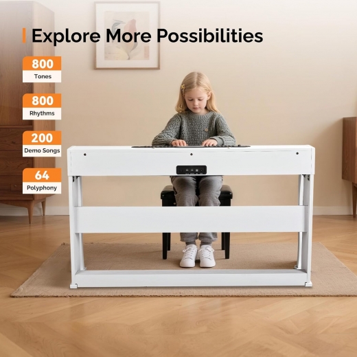 【Son authentique de piano】Ce piano numérique produit un son très proche de celui d’un vrai piano grâce à ses échantillons numériques de haute qualité. Avec une sélection de 800 sons différents, 200 rythmes et 200 morceaux de démonstration, il offre aux musiciens une large gamme de possibilités pour libérer toute leur créativité.
