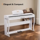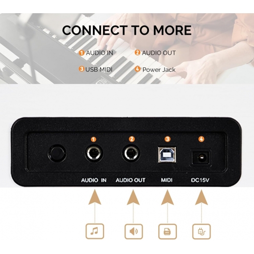 【Variété sonore en qualité studio】Notre piano numérique offre une expérience audio complète. De puissants haut-parleurs stéréo de 2 x 10 W assurent un son riche. Avec les fonctions d’enregistrement et de lecture, de transposition, ainsi que les modes double son et accompagnement, votre jeu devient un concert personnel. Ces caractéristiques font de cet instrument votre véritable studio domestique compact.