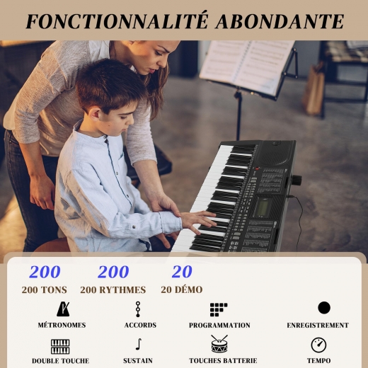 【Exploration Musicale Sans Fin】Découvrez un monde sonore avec 200 voix premium, 200 rythmes dynamiques et 80 morceaux de démonstration. La fonction d'enregistrement/lecture vous permet de suivre vos progrès et d'affiner vos compétences, tandis que les 3 modes d'apprentissage (one-key, follow, ensemble) rendent l'apprentissage ludique et intuitif