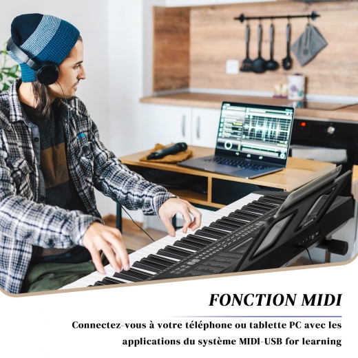 【Technologie MIDI Bluetooth Révolutionnaire】Utilisez la fonction midi bluetooth, notre piano à clavier peut se coupler avec votre téléphone ou ipad, puis se connecter à des applications ainsi qu'à votre pc ou tablette directement pour l'arrangement ou l'accompagnement