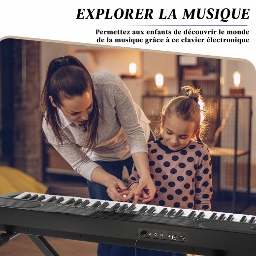 【Équipement Complet】Fabriqué en acier de qualité supérieure, notre support de clavier en X offre un maintien stable pour les pianos numériques. Le banc et le support réglables conviennent à tous les âges. Notre piano est livré avec 1 casque, 1 microphone, 1 autocollant et 1 support pour partitions ( remarque : les accessoires sont inclus dans l'emballage en mousse )