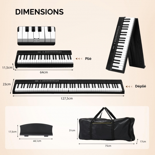 【Facile à utiliser】 : Les écouteurs inclus permettent de s'entraîner en privé sans déranger les autres, tandis que la fonction d'enregistrement intégrée au clavier permet de capturer l'inspiration musicale.